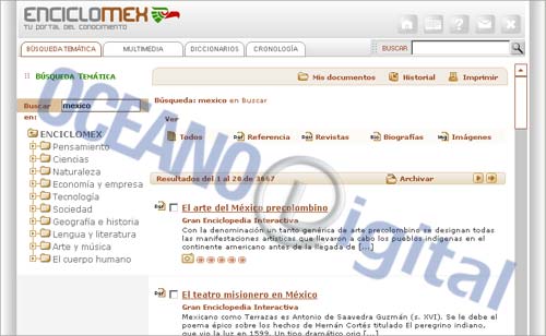 Enciclomex es una biblioteca virtual en lengua española, que integra - en un único producto, en una única "enciclopedia" - diversas obras, publicaciones y enciclopedias especializadas.
