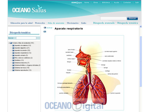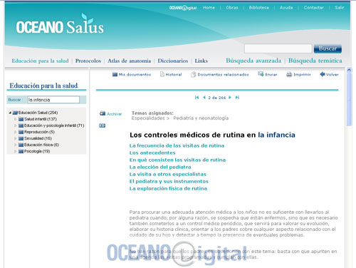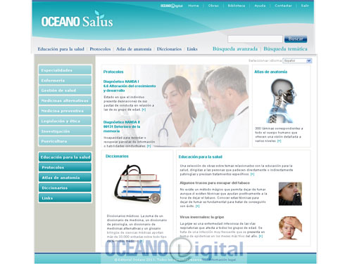Océano Salus dispone de una amplia base de datos con más de 10.000 artículos y 7.000 gráficos e ilustraciones sobre salud, nutrición y educación en el cuidado personal, así como diversos diccionarios completos de consulta médica y psicológica en español.