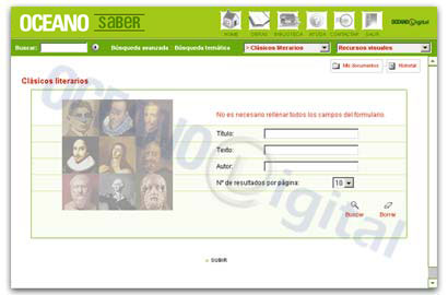 Among the improvements in utility of the Océano line of products, a new way to access the works contained in the section of literary classics in Océano Colegial has been developed. This includes a more dynamic presentation of the section, which allows regularly emphasizing and recommending authors.