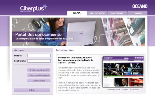 Ciberenciclopedia plus was developed for the network of Océano online products, thus has all the benefits of products developed for the digital platform Digital Océano like maintanence, updating its content, and all the management, access and control tools.